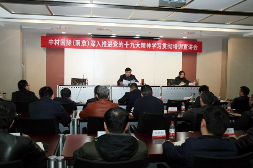 本网讯 12月4日,中材国际(南京)召开深入推进党的十九大精神学习贯彻培训宣讲会,不断深化党的十九大精神的学习宣传贯彻,切实把党的十九大精神学深悟透、入脑入心,切实把思想和行动统一到党的十九大精神上来、把智慧和力量凝聚到党的十九大确定的各项任务上来。会上,中材国际(南京)党委书记、董事长沈军以进一步学习宣传贯彻好党的十九大精神为主题进行了宣讲、提出了要求,邀请南京市委党校胡宝平教授作了党的十九大学习专题讲课。公司领导班子成员、总经理助理、总监、各党支书记、各部门正副职和部门助理等70多人参加了会议。