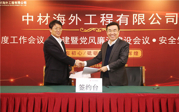 高超代表公司作2018年度工作报告。他在报告中表示,公司以优异的经营业绩较好的完成了2017年工作指标,并对2018年经营目标进行具体部署。2018年,公司将认真领会并执行集团、中材国际及天津板块工作会精神,明确2018年度经营目标,继续加大市场开发力度;聚焦主业的同时,增强海外分子公司业务拓展能力,实现多元化经营,进一步提升公司核心竞争力和盈利能力;加强风险管控,提高项目履约能力;广泛开展中材国际“五星项目”创建工作;继续加大创新力度,严格落实安全生产责任制;求真务实加强党建工作,全力推动公司完成2018年经营目标。