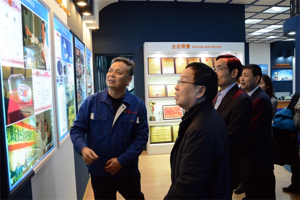陈超英到晶体院后,首先参观了科技展厅,周育先、张伟儒、李勇结合展厅图片向陈超英汇报了晶体院历史沿革、科技创新、产业发展、未来发展战略。周育先在汇报“卡脖子”材料时讲述了以沈德忠院士为领军的科研团队,打破美国对我国禁运KTP晶体的感人爱国故事。