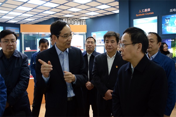 陈超英还参观了人造水晶车间。周育先汇报说,1973年,经时任国务院副总理余秋里批准,晶体院从国库里购买了一块大尺寸优质天然水晶,作为生长人造水晶的晶种,研制出了国内尺寸最大且质优的人造水晶。1985年晶体院自主研制的人造水晶项目获国家级科技进步二等奖,为我国电子工业做出了突出贡献。