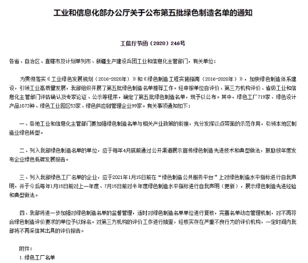 本次公示的绿色工厂有719家。绿色工厂是指实现用地集约化、生产洁净化、废物资源化、能源低碳化的工厂。此次获得该荣誉称号,标志着公司在全面践行绿色环保可持续发展理念的道路上又迈出了坚实的一大步!