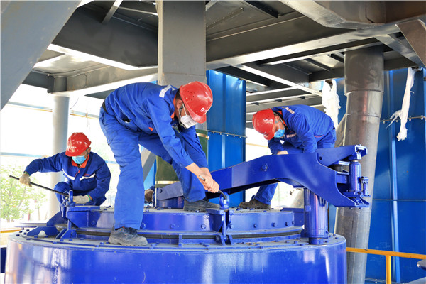 祁连山成县公司二线水泥调配仓下面,杨发力、张华和张瑾三名青工正给4号下料仓安装振打电机,工作和天气的炎热让他们看上去有些疲惫。连日来,他们一直实施3号入磨皮带改造等小改小革工作,优化工艺流程,降低能源消耗。陇南潮湿多雨,物料涌堵频繁,为了保证下料通畅,成县公司的技术和维修骨干,先后通过锁风喂料器改为司德伯阀、安装振打电机等改造工作,解决堵塞问题,减轻劳动强度、提高运行效率,收效良好。节日期间,他们未雨绸缪,加班加点,将可能出现的问题及早处理,作到放假不停生产,维护正常的生产秩序。