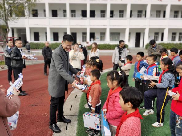 2021年11月19日,中国建材集团“我为群众办实事”——善建七彩课堂圆梦“微心愿”活动——南方水泥集中发放仪式在安徽省池州市石台县仙寓镇珂田中心学校举行。石台县县委常委、副县长(挂职)杨建强出席活动并讲话,南方水泥机关团支部委员魏印俊代表公司团委参加仪式。